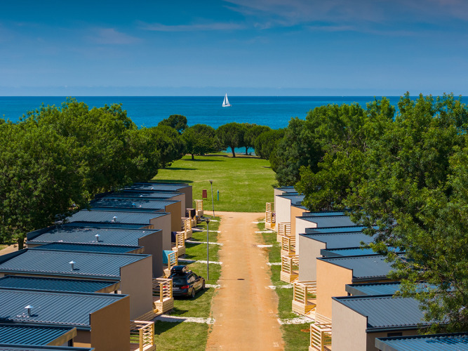 Eingebettet entlang der atemberaubenden Adriaküste in Istrien bietet Camping Park Umag ein modernes Glamping-Erlebnis, das ideal für Familien und Naturfreunde ist. Der Glamping-Bereich verfügt über stilvolle, voll ausgestattete Luxuszelte und Lodges, die von mediterranem Grün umgeben sind und die perfekte Kombination aus Komfort und Outdoor-Abenteuer bieten. Die Gäste genießen die Nähe zum Meer, großzügige Grünflächen und eine wunderschön gestaltete Umgebung. Die Anlage besticht durch spektakuläre Pools und lebhafte Wasserparks mit Rutschen, Spritzbereichen und thematischen Spielzonen, die Kindern endlosen Spaß bieten. Während Erwachsene am Pool entspannen oder Wellnessbehandlungen genießen, können Kinder an betreuten Animationsprogrammen und Aktivitäten teilnehmen. Zu den Einrichtungen vor Ort gehören Restaurants, Bars, ein Minimarkt, Sportplätze, Fahrradverleih und direkter Zugang zum Strand – all das garantiert einen sorglosen und unvergesslichen Glamping-Urlaub in Kroatien.