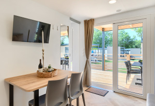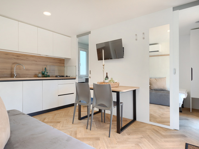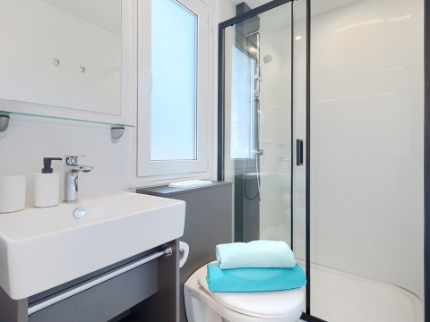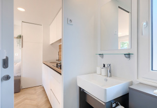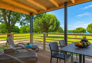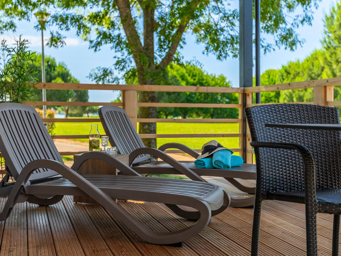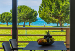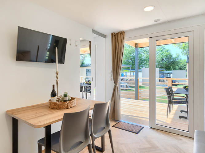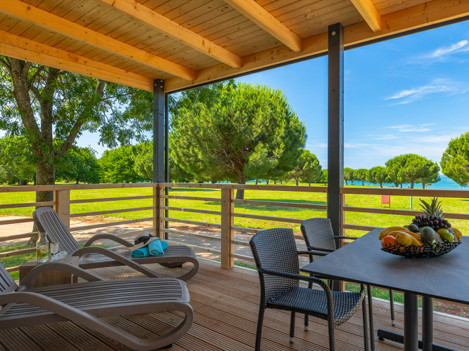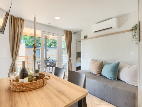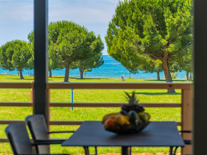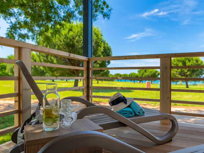 Entdecken Sie Park Riviera Adria Blue Seaside, einen brandneuen (2024) luxuriösen Glamping-Aufenthalt im Camp Park Umag, nur 150–300 Meter von der Adria entfernt. Die Verbindung aus modernem Komfort und natürlichem Charme ist ideal für Familien oder Freunde (bis zu 4 Personen). Entspannen Sie sich auf Ihrer großzügigen, überdachten Terrasse mit Meerblick, Sonnenliegen und Möglichkeiten für Mahlzeiten im Freien. Im Inneren genießen Sie einen stilvollen Wohnbereich mit voll ausgestatteter Küche (Geschirrspüler, Mikrowelle, Kaffeemaschine), Klimaanlage und einer gemütlichen Lounge. Zwei Schlafzimmer und zwei Badezimmer sorgen für Komfort und Privatsphäre. Zu den Annehmlichkeiten gehören WLAN und Satelliten-TV, Moskitonetze sowie praktische Extras.
