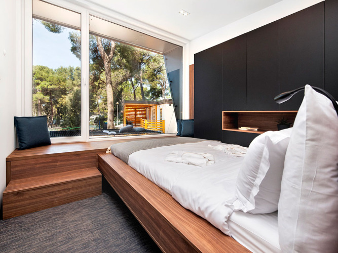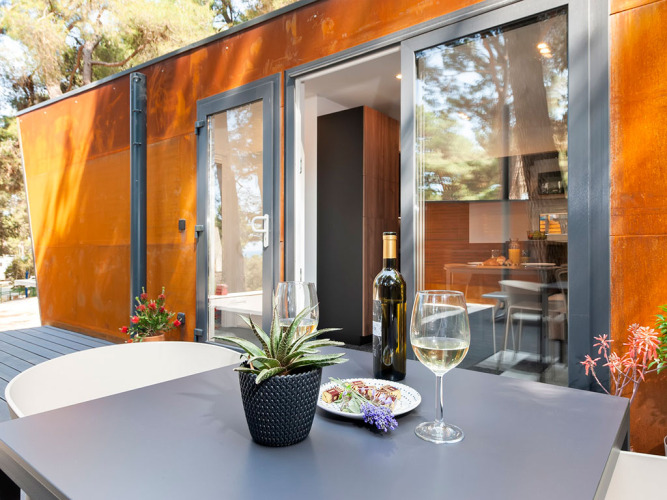 Entdecken Sie den ruhigen Charme von Porton Nature Hideouts, einem Glamping-Campingplatz unter hohen Pinien an der istrischen Küste Kroatiens. Genießen Sie moderne, modulare Mobilheime, einige mit privaten Pools, die sich harmonisch in die Natur einfügen. Entspannen Sie auf Ihrer eigenen großzügigen Terrasse und lassen Sie die friedliche Waldatmosphäre auf sich wirken. Erkunden Sie den nahegelegenen Kies- und Steinstrand, der nur einen kurzen Spaziergang entfernt ist, und genießen Sie erfrischende Getränke an der Strandbar. Bleiben Sie aktiv mit Beachvolleyball, Fahrradverleih oder Tauchkursen. Stillen Sie Ihren Appetit im Restaurant vor Ort, das lokale und internationale Küche serviert. Ob Sie entspannte Privatsphäre oder leichte Abenteuer suchen, Porton bietet Ihnen eine naturnahe Auszeit, nur wenige Minuten vom charmanten Städtchen Rovinj entfernt.