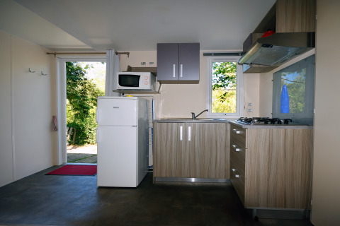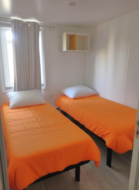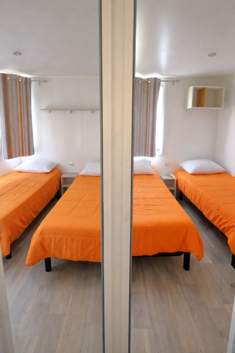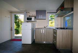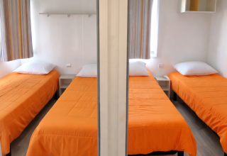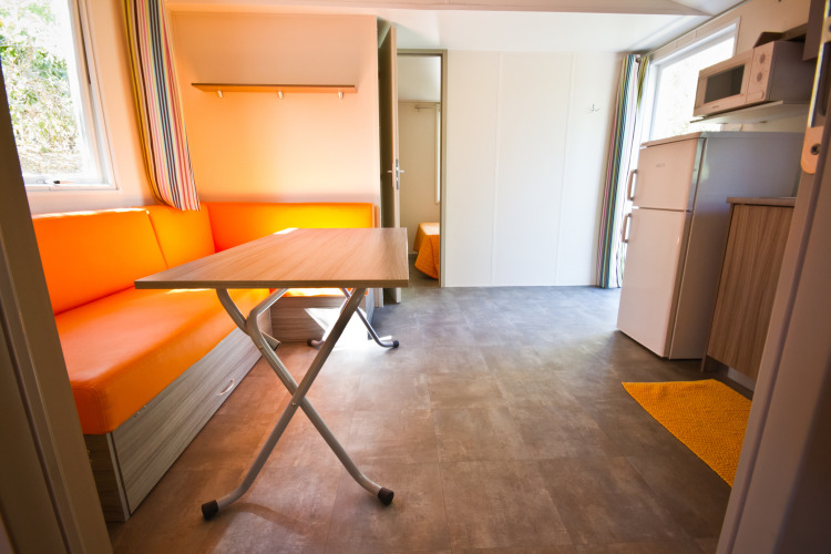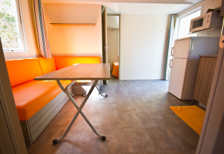 Gönnen Sie sich den ultimativen Familienurlaub im Mobile Home Royal, einem edlen Vierzimmer-Refugium, das für Großzügigkeit und Eleganz steht. Dank vollständiger Klimatisierung genießen Sie hier zu jeder Jahreszeit höchsten Komfort. Die Unterkunft bietet einen einladenden Wohnbereich und eine moderne Küchenzeile mit Mikrowelle und Kühlschrank – perfekt als Ihr Zuhause auf Zeit.
