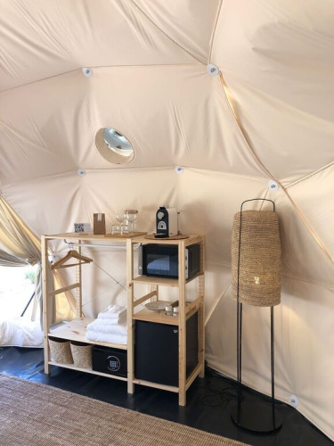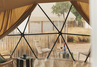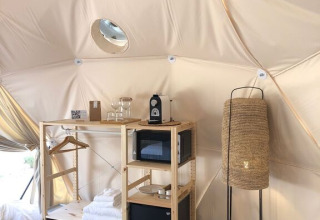 Obwohl es kein eigenes Badezimmer oder Küche gibt, befinden sich die gemeinsamen Einrichtungen nur wenige Meter entfernt. Ideal für Paare, die das Leben im Freien mit Komfort und einem Hauch von Luxus kombinieren möchten, in einer besonderen und ruhigen Umgebung. Genieße die private Terrasse mit Gartenmöbeln. Erwache mit dem ersten Licht und den Klängen der Natur: Das ist Glamping von seiner besten Seite.