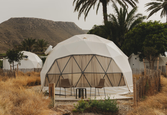 Mitten in einem der beeindruckendsten Naturparks Spaniens, Cabo de Gata. Übernachte nur wenige Gehminuten vom Strand entfernt – umgeben von vulkanischen Bergen, Salinen und idyllischen Buchten. Dieses Glamping verbindet Komfort mit unberührter Natur. Genieße Sternennächte in einer Kuppel, Wanderungen entlang des Riffs der Sirenen oder Kajaktouren zu abgelegenen Buchten. Ein modern eingerichtetes Glamping mit Pool, Restaurant und Strandbar. Von abenteuerlichen Ausflügen bis zu entspannten Strandtagen: Hier dreht sich alles um das Leben im Freien und pure Erholung.