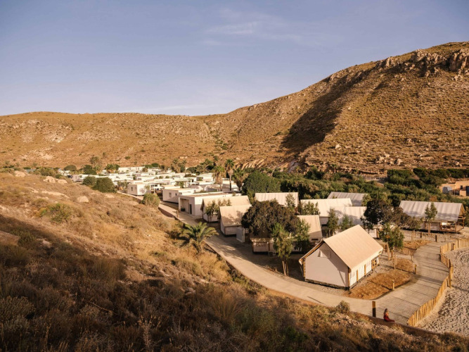Mitten in einem der beeindruckendsten Naturparks Spaniens, Cabo de Gata. Übernachte nur wenige Gehminuten vom Strand entfernt – umgeben von vulkanischen Bergen, Salinen und idyllischen Buchten. Dieses Glamping verbindet Komfort mit unberührter Natur. Genieße Sternennächte in einer Kuppel, Wanderungen entlang des Riffs der Sirenen oder Kajaktouren zu abgelegenen Buchten. Ein modern eingerichtetes Glamping mit Pool, Restaurant und Strandbar. Von abenteuerlichen Ausflügen bis zu entspannten Strandtagen: Hier dreht sich alles um das Leben im Freien und pure Erholung.