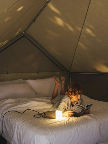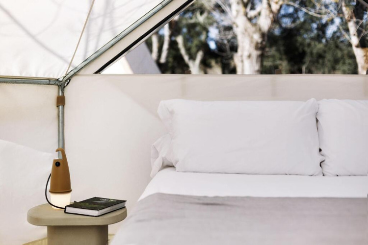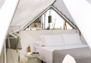 Es gibt keine Küche oder eigenes Bad, aber die öffentlichen Toiletten sind nur wenige Meter vom Zelt entfernt. Es verfügt über ein komfortables Doppelbett und ein Einzelbett mit allen nötigen Dingen wie Handtüchern und Bettwäsche sowie einem Minikühlschrank, Kochgeschirr und einer Mikrowelle.