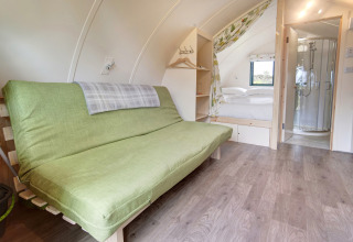 Der Wohnbereich ist dank Elektroheizung kuschelig und warm und lädt zum Entspannen nach einem Tag an der frischen Luft ein. Streamen Sie Ihre Lieblingsserien auf dem 28" Smart-TV, legen Sie eine DVD ein oder surfen Sie mit dem WLAN im Internet. Das en-suite Badezimmer verfügt über eine Spültoilette, eine Dusche und eine Steckdose für Rasierer, sodass Sie auf Komfort nicht verzichten müssen.