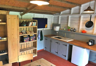 Gemeinsam zu kochen ist hier ganz einfach. Es gibt einen überdachten Außenkochbereich mit Picknickbank, Camping-Gaskocher, Grill und dem gesamten nötigen Küchenequipment. Heizen Sie den Grill an, genießen Sie ein langes Abendessen im Freien und verweilen Sie mit einem Getränk, während die Sonne untergeht. In den alten Stallungen finden Sie einen Spülbereich, Tisch und Stühle, Steckdosen zum Aufladen von Handys sowie einen Kühlschrank und einen kleinen Gefrierschrank, um Ihre Lebensmittel und Getränke kühl zu halten.