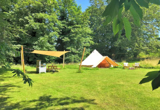 De Iris-tent was charmant en ruim. We waardeerden de privacy en de goed onderhouden voorzieningen. De picknickbank was geweldig voor onze maaltijden.