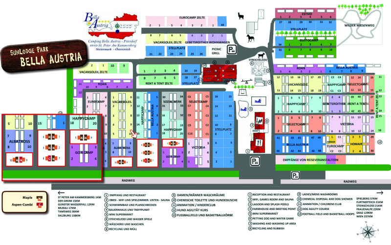 Simple campground with many mobile homes from different providers. There is some difference in quality. We booked through Roan and had a fine accommodation. The pool is especially nice for small children and is open this year until the campsite closes (Sept 21). There is a mini petting zoo where there is a daily cuddle hour. Other than that you can't go in. Store is very small, expensive and open for a limited time. In the village there are two supermarkets. For larger shopping we went to the Lidl in Murau. There you will find even more stores. The campground is a nice base to do things, but you must not hate driving :)