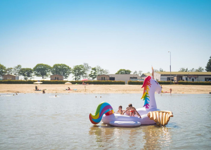 At this vacation park you will find plenty of space to enjoy your surroundings and company in a relaxed atmosphere! You will stay in beautiful accommodations located along winding, green forest paths. Or enjoy a fresh croissant and coffee on your terrace overlooking the pond. On hot summer days, relax on the sandy beach and take a refreshing dip in the swimming pond. For the little ones, there is a shallow, fenced area next to the playground. Older children prefer to somersault on the bouncy castle or play table tennis and beach volleyball on the beach. Adults can enjoy a game of pétanque or relax fishing in the pond. Additional entertainment for all ages is provided during the summer months.