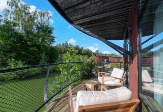 Slide open the door to your private terrace and step straight into the fresh forest air. The outdoor lounge set and garden furniture invite you to relax with a drink, read a book, or play games together until the sun goes down.
