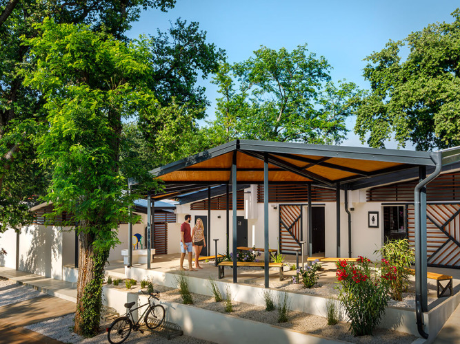 Mi sàtoros mobilhàzban szálltunk meg, ami tökéletes választás volt. A konyha teljesen felszerelt, a szobák kényelmesek, minden nagyon tiszta volt. Hangulatos a sátor belül, klíma is volt, grillezni is tudtunk. Sajnos a kemping területén lévő medencéket nem tudtuk használni, nekünk nagyon hideg volt a vize. A kemping területén minden van, bolt, suvenires, étterem, játszótér, sportpályák, kutyusoknak is külön játszó. Családoknak ideális, de baráti társasággal is. Szerettünk itt lenni.