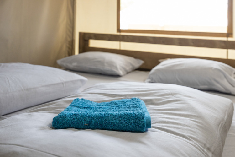 You need to bring your own towels or book it as an extra.Can I book a baby bed as an extra at Safaritent + sanitary facilities + air conditioning?