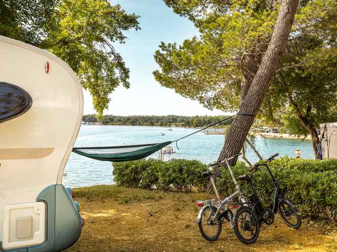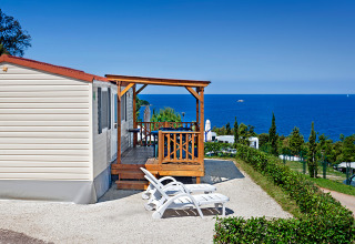 Camping Orsera in Vrsar, Croatia, offers a stunning glamping experience overlooking the Adriatic Sea. Enjoy stylish and modern mobile homes set on terraced plots, many with breathtaking sea views and private wooden terraces for outdoor dining and relaxation. The interior design is bright and welcoming, equipped with a kitchen, dining area, and comfortable seating, ensuring all the comforts of home. Just steps from the water, glamping guests can unwind on sunloungers, enjoy al fresco meals with panoramic vistas, or simply relax in peaceful natural surroundings. The site has excellent amenities including free WiFi, a restaurant, mini-market, and daily and evening activities for all ages. Embrace the Mediterranean ambiance and make special memories as you wake up to the sound of the sea, explore nearby islands, and soak up the sun from your private terrace.