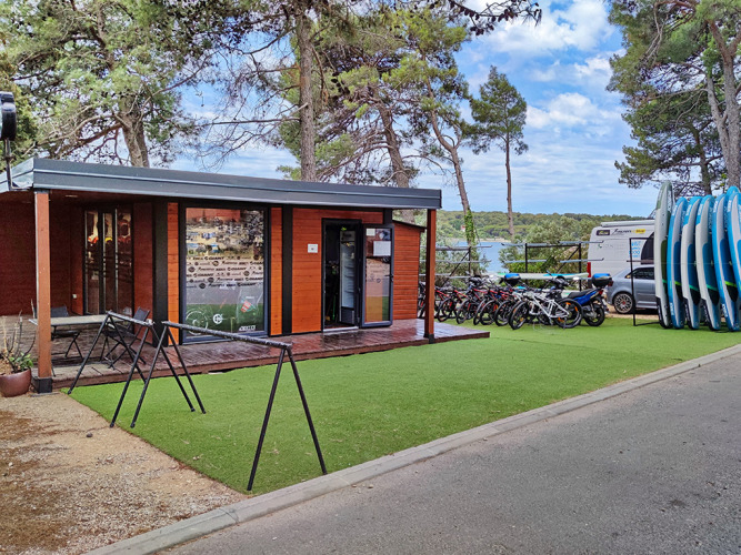 Discover the magic of Camping Village Poljana on the beautiful island of Lošinj. Explore hidden coves and crystal-clear seawater, ideal for swimming, snorkeling, or relaxing boating. Enjoy comfortable glamping accommodations. Modern mobile homes are nestled in Mediterranean forests or on terraces overlooking the bay. Relax on pebble beaches or rocky plateaus under the sun, dine at the on-site restaurant, or unwind with a drink at the bar. Whether you're looking for adventure, fun for the whole family, or just serene seaside comfort: Camping Village Poljana offers it all.