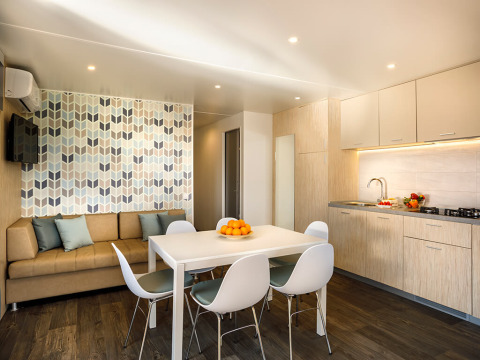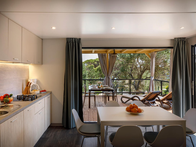 With stylish interiors, a stunning terrace, and all the comforts of home surrounded by nature, Padova Suite for 4+2 is the perfect choice for a relaxing and memorable glamping experience at Valamar Camping Padova.