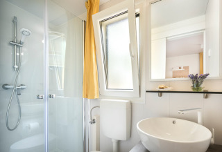 A very nicely located campsite in a bay . Sanitary facilities are clean . In the front row you stand in the sand and directly on the beach promenade. Dogs are allowed here. There is an extra dog beach. Outside the area (beach promenade) there are many activities for children (small carousel park). Everything is a short walk away. Beach promenade clean and water about 500 meters very shallow so that it is ideal for children. Playground equipment on the beach and in the water. Restaurant and small grocery store, as well as a fruit and vegetable garden. Outside the campsite there is also a large grocery store (within easy walking distance). With a small train (price per head 2€) you can quickly get to the city center