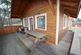 The chalet has 2 bedrooms and 1 bathroom, and is designed to feel bright and welcoming. In the living area you can curl up in the seating corner after a day outside, while the electric heating keeps everything pleasantly warm, even on cooler evenings. The kitchen is fully equipped with an electric kettle, oven, microwave and refrigerator, so cooking simple meals or hearty breakfasts is easy.