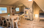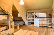 On the coast of the Limfjord, in the heart of Central Jutland, you'll find Glyngøre Camping – a place where peace, nature, and coziness come together. Here you camp right by the water, next to the charming fishing village of Glyngøre. Children play in the playground or at the animal meadow, while water lovers enjoy themselves in the heated swimming pool. During the day, you can explore the fjord, walk through nature, or visit attractions such as Jesperhus Flower Park and the island of Fur. In the evenings, relax together by the fire pit or in the cozy living room of the park. The fully equipped safari tents offer the comfort of home with the true outdoor feeling, perfect for those who love adventure with a touch of luxury.