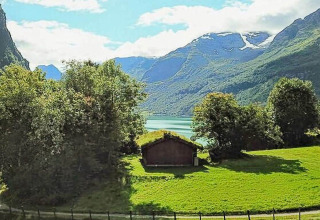 Wake up surrounded by towering mountains, glittering glaciers and deep green valleys in this cozy holiday home in Olden. Tucked away in a peaceful cottage area, this is the perfect base for a group of friends or an active family who want to explore the best of fjord Norway.