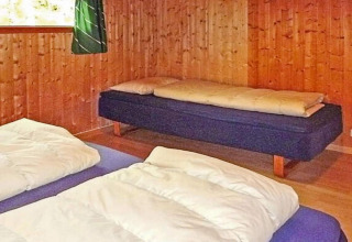 The cabin sleeps up to 6 people in 2 bedrooms, including a bunk bed room where the lower bed is a comfortable 120 cm wide. On request you can borrow a cot for little ones aged 0–3, so even the smallest traveler can join the adventure. There’s 1 bathroom, and everything is compact, practical and made for relaxed days after being outside.