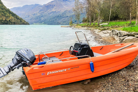 Speaking of fishing: beautiful Oldevannet lake is only 150 meters away. Here you can fish for trout and char, and there’s an indoor filleting space for freshwater fish. If you’ve had a really good day on the water, you can use the filleting area in the boathouse. Want to get out on the lake? Rent the 14-foot boat with 25 HP engine (for a fee) and enjoy the crystal-clear water from up close.