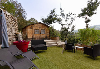 Inside, the atmosphere is warm and welcoming. Light up the fireplace, open a bottle of wine and settle in for late-night chats after a day outdoors. The simple, comfortable interior focuses on what really matters: good company, fresh air and time to unwind. Large windows let in lots of natural light and give you a constant peek at the wild Ardèche landscape.
