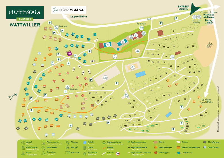 At the park you will find an indoor pool, an outdoor pool and a paddling pool.Is there a camping store at Huttopia Wattwiller?