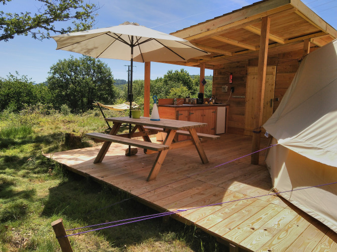 We spent two weeks in a Bell tent with slide at this wonderful campground. It is a true Valhalla for children. Lots of places to play, space, clean pool. The campsite is in a quiet area, supermarket is 10 minutes drive. Madelon and Vincent are hard workers, compliments! Good luck and I hope you can enjoy this place for years to come!