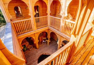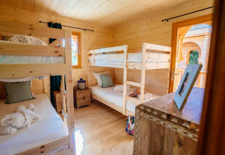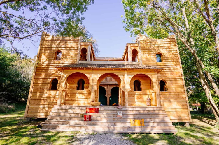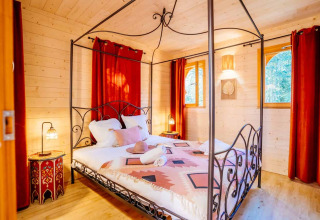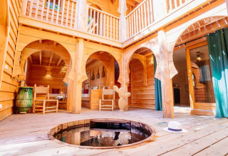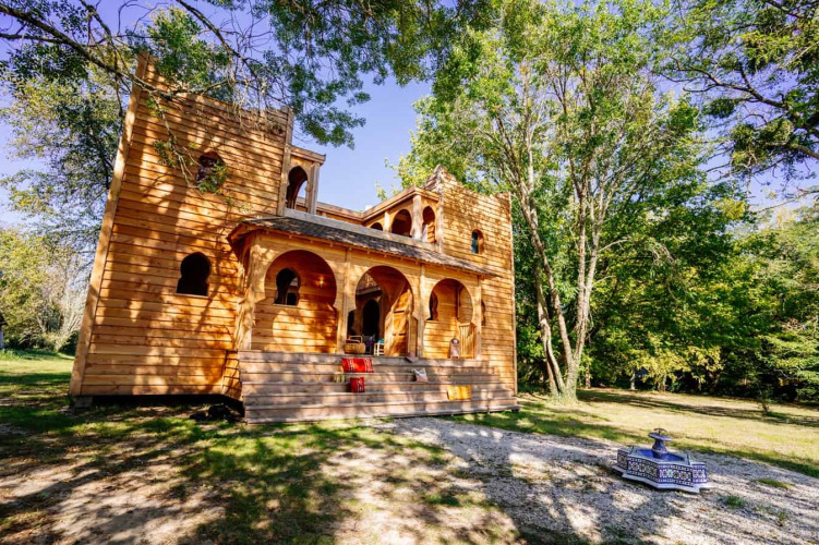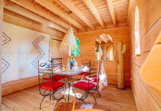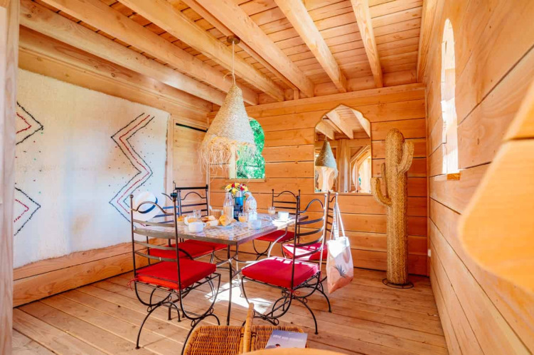 Step into a world full of color, fragrance, and atmosphere. This unique, custom-built wooden riad is inspired by the architecture of One Thousand and One Nights and offers an enchanting experience surrounded by nature. Inside, you'll find two separate bedrooms, a cozy dining area, and a fully equipped kitchen. The bathroom is stylishly designed, with a separate toilet for extra comfort.
