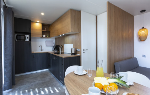 I agree with other reviews I've read... As for the campsite location and the peace and quiet, no worries, very good for a family with children. Close to the beach with secure gate etc... On the other hand, in terms of value for money, for me it's a big disappointment, especially for "premium". I can compare it with classic mobile home rentals that I've rented elsewhere for between 600 and 850€ a week (at the same period), but the problem is that this one costs 1100€ a week, and at that price I'm sorry, but we can't afford any more mistakes... The mobile home was not clean when we arrived, and hadn't been for a while. I simply lifted a bed to put a cot in it, and to my surprise there was nothing clean! I looked a little further and it was the same in all the rooms and nooks and crannies, the bay windows were not clean, the terrace, chairs and so on (with pine sap etc...). No cleaning kit, little storage space - I'm repeating myself - but for much cheaper weeks we had it. I really wonder how these 4 stars came about. For my part, I'm quite annoyed by this: 1100€ for a week, some people who work don't even get that much for a month! I mentioned this verbally before I left, so I'm not taking anyone by surprise with this opinion.