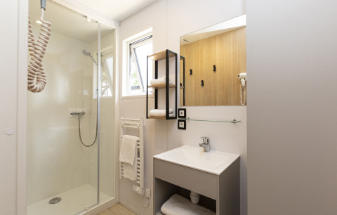 Enjoy comfort and tranquility in the Stacaravan Premium at Flower Camping Tamarins Plage. This modern accommodation of 34 m² offers everything you need for a relaxing stay on the beautiful Île de Ré. The mobile home is located in a quiet part of the campsite and is suitable for up to 4 people, with two separate bedrooms for extra privacy. Pets are welcome, so your loyal four-legged friend can come along on holiday.
