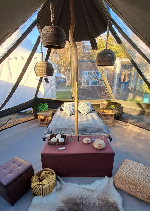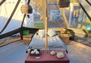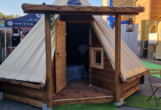 Relax in the heart of nature and enjoy a peaceful spot on the campsite section. This compact glamping unit of 13 m² offers space for up to 3 people, with a double bed of 140 x 190 and a foldable bed of 90 x 190. Pets are welcome under certain conditions, so your four-legged friends can join as well. There is no kitchen, but outside you'll find a picnic table and barbecue for cozy moments in the open air. Sanitary and toilet facilities are shared and located a short distance away. The accommodation radiates simplicity and tranquility and is ideal for those who want to experience nature without giving up comfort. Perfect for a short, relaxing escape.