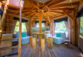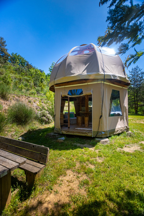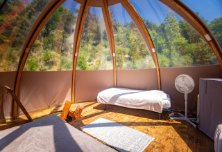 Sleeping in the Bulle Wigwam is an experience to remember! Thanks to the transparent dome on the second floor, you literally sleep under the starry sky of southern France. The spacious wigwam accommodates up to six people and has cooking facilities. Get carried away by the Milky Way and wake up to breathtaking views of the nature around you.