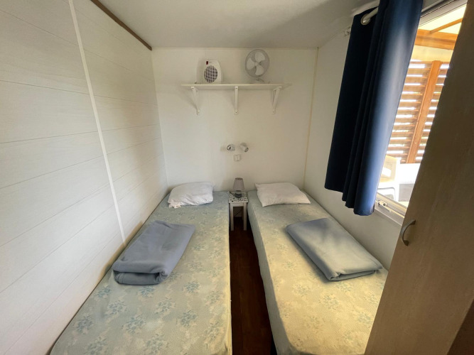 Good campsite, but much too noisy, especially if the mobile home is at the campsite entrance. The entertainment on offer is pretty good, and the services are not bad: bar, restaurant, snack bar, ice cream parlour, mini-market, clothes store, launderette, bakery, brasserie... Security doesn't do its job at night, and there's a lot of noise. Security doesn't do its job at night,lots of noise.the aquatic area is top-notch but too crowded all the time, so no deckchairs,the lagoon is magnificent with far fewer people, but access is counted with wristbands. Little train nearby, but expensive, bike path, shops... Overall, a campsite to be redone, but far from the entrance.