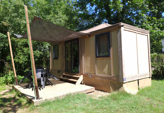 Enjoy the outdoors on the spacious terrace, perfect for breakfast in the morning sun or a cozy evening with a drink. A cozy garden set is provided for optimal comfort. Although the bungalow does not have its own bathroom or toilet, you will find the well-maintained sanitary block just 30 meters away. This allows you to experience the real camping feeling, but with the convenience of modern amenities.