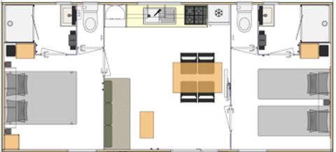 Zen Stacaravan for four people, two bedrooms and two bathrooms, with private spa.