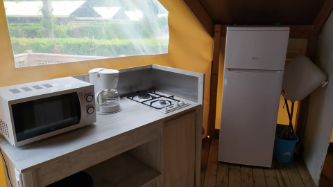 Ecolodge toilé Standard is equiped with wifi (free). The park offers free wifi in the shared space(s).Is there a camping store at Flower Camping La Rivière?