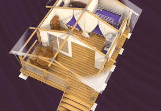 Escape the daily hustle and enjoy an atmospheric 30 m² lodge on stilts with a covered wooden terrace of 10 m². Experience the pleasure of being together in a spacious living area with a fully equipped kitchen and discover two separate bedrooms that offer comfort and privacy. This cabane lodge combines the charm of outdoor living with the convenience of modern camping. Pets are welcome, so four-legged friends can be part of the adventure too. Without a bathroom and toilet, but with plenty of space to live, cook, and relax, everything here is about simplicity, nature, and connection. Perfect for those who love the outdoor feeling with just that little bit of extra luxury.