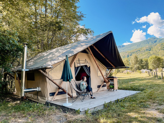 With a private bathroom, cozy beds, a wood-burning stove and a generous terrace with garden furniture and plancha, this is truly a vacation paradise! The tent, with a surface area of 25 m², offers absolute comfort under the stars.
