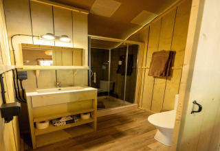 The bathroom is modern and practical, with a shower, toilet and hairdryer, so you can freshen up after a day outside. A laundry package is included, which means less to pack and more space in your bag for fun stuff.