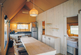 Just across the Dutch border lies holiday park Wilsumer Berge, where enjoyment and relaxation take center stage. The safari tents, with African-inspired interiors, provide an adventurous feeling while offering the luxury and comfort of glamping. Glamping Wilsumer Berge is located by a unique recreational lake with a sandy beach and surrounded by nature. During the day, there's plenty to do at the park, and in the evening, you can enjoy a delicious meal at the restaurant.