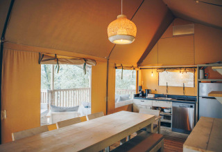 Prima. Lux, maar toch kamperen. In een tent, maar met degelijk houten indeling De veranda en indeling van de tent