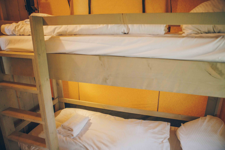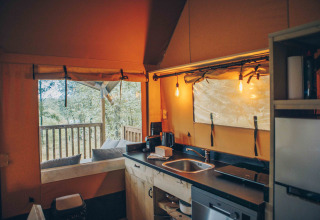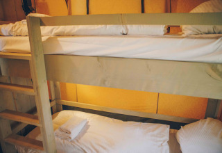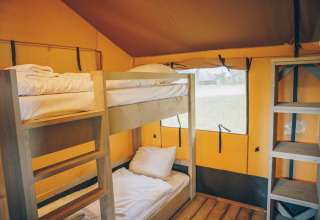 The safari tents are equipped for up to 7 people. The safari tents have 3 bedrooms. In the master bedroom you will find a double bed, in the second bedroom you will find a single bed and a bunk bed and in the third bedroom you will find two single beds. The tents are decorated African style. Each safari tent has a theme from the nature of Africa in the form of an animal! How cool is that?