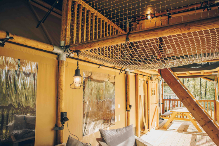 Fine. Lux, but still camping. In a tent, but with solid wooden layout The porch and layout of the tent