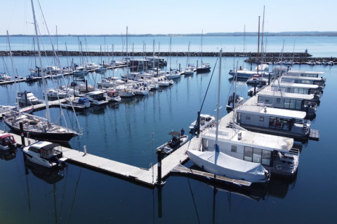 Looking for something a little different for your next break as a couple? This cosy houseboat in Marina Boltenhagen offers you the perfect mix of comfort, privacy and being close to nature – without needing a boating licence. Your floating holiday home lies securely on a fixed berth in the Weißen Wiek, right on the Baltic Sea.