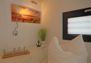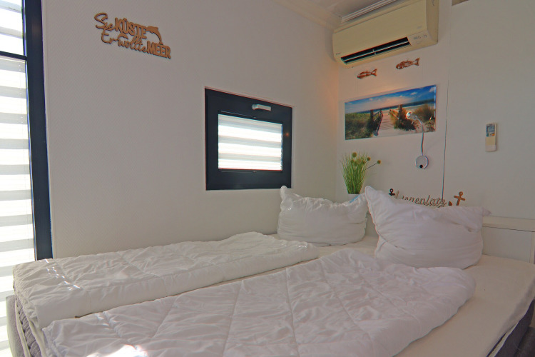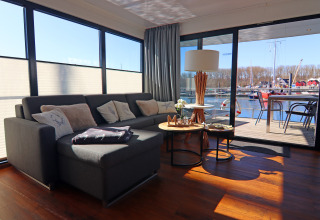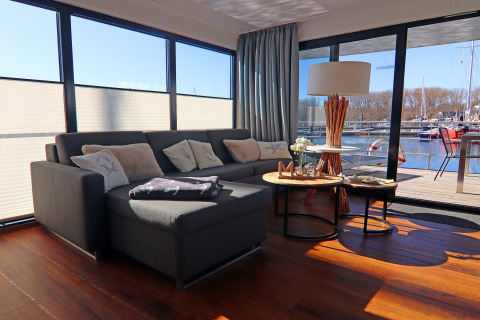 Wake up to gentle waves and wide open views. Thanks to the large glass fronts in the living and dining area, the light floods in and you always feel connected to the water and the sky outside. If you prefer shade or a bit more privacy, you can easily close the blinds and create a snug, intimate atmosphere – ideal for a romantic evening for two.