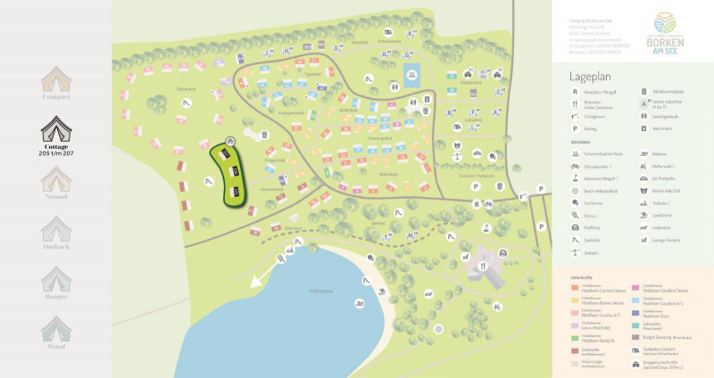 Camping Borken am See is a glamping site in Germany near fun activities. Around the corner from the park you will find a climbing forest, and a short drive away you will find several nice villages and towns as well as playgrounds or even Movie Park Germany.