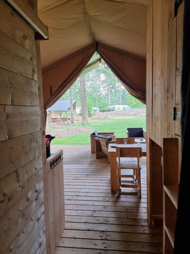Safari tent + sanitary facilities is equiped with wifi (free). The park offers free wifi in the shared space(s).