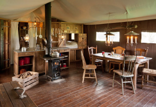 Adventurous and cozy: life without electricity No electricity? That's what makes it extra special! The tent is attractively lit with oil lamps and candles, and cooking is done on the wood stove. There are logs ready to make it nice and warm and cozy. Do you dare?
