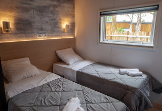 The Prestige Cottages at the campsite are also highly recommended. They are suitable for 4, 6, or 8 people. Experience real luxury and total relaxation here. The cottages have 2 to 4 bedrooms with private bathrooms and a fully equipped kitchen. Outside, you'll find a terrace with a jacuzzi, garden furniture, loungers, and deck chairs for ultimate relaxation!